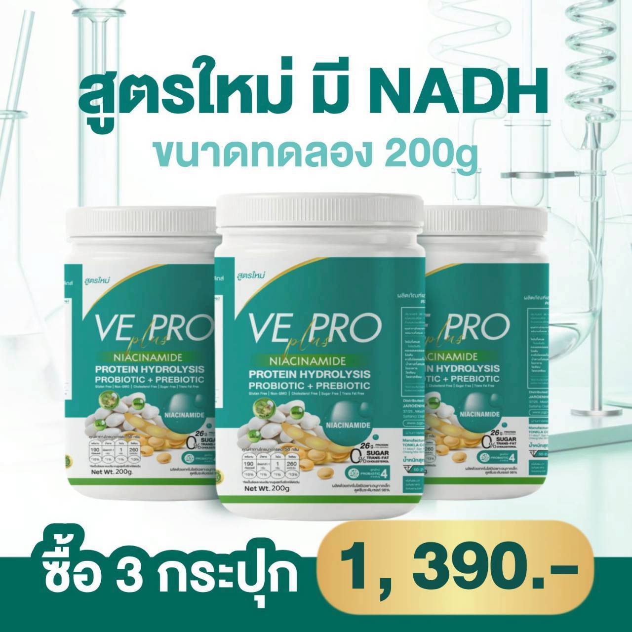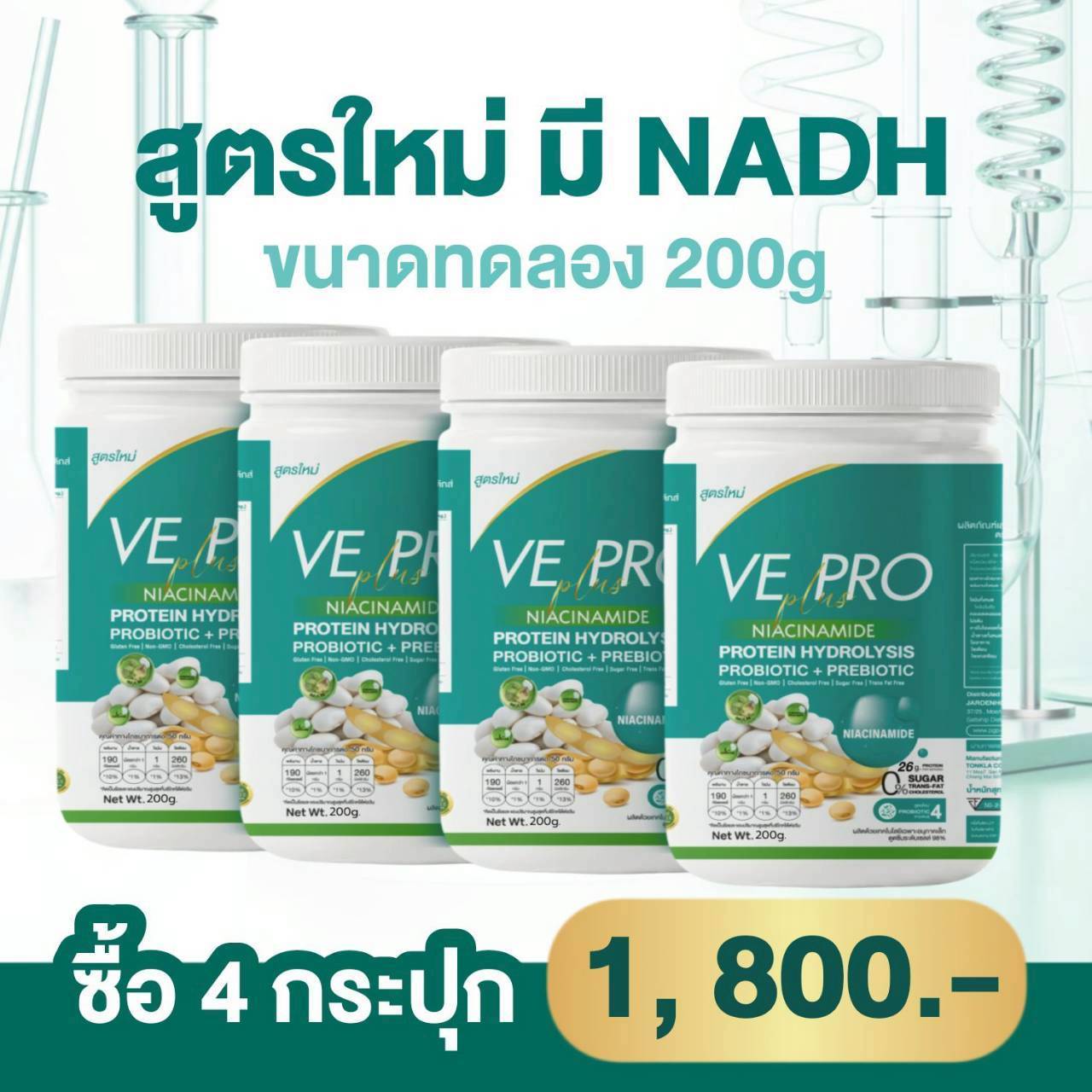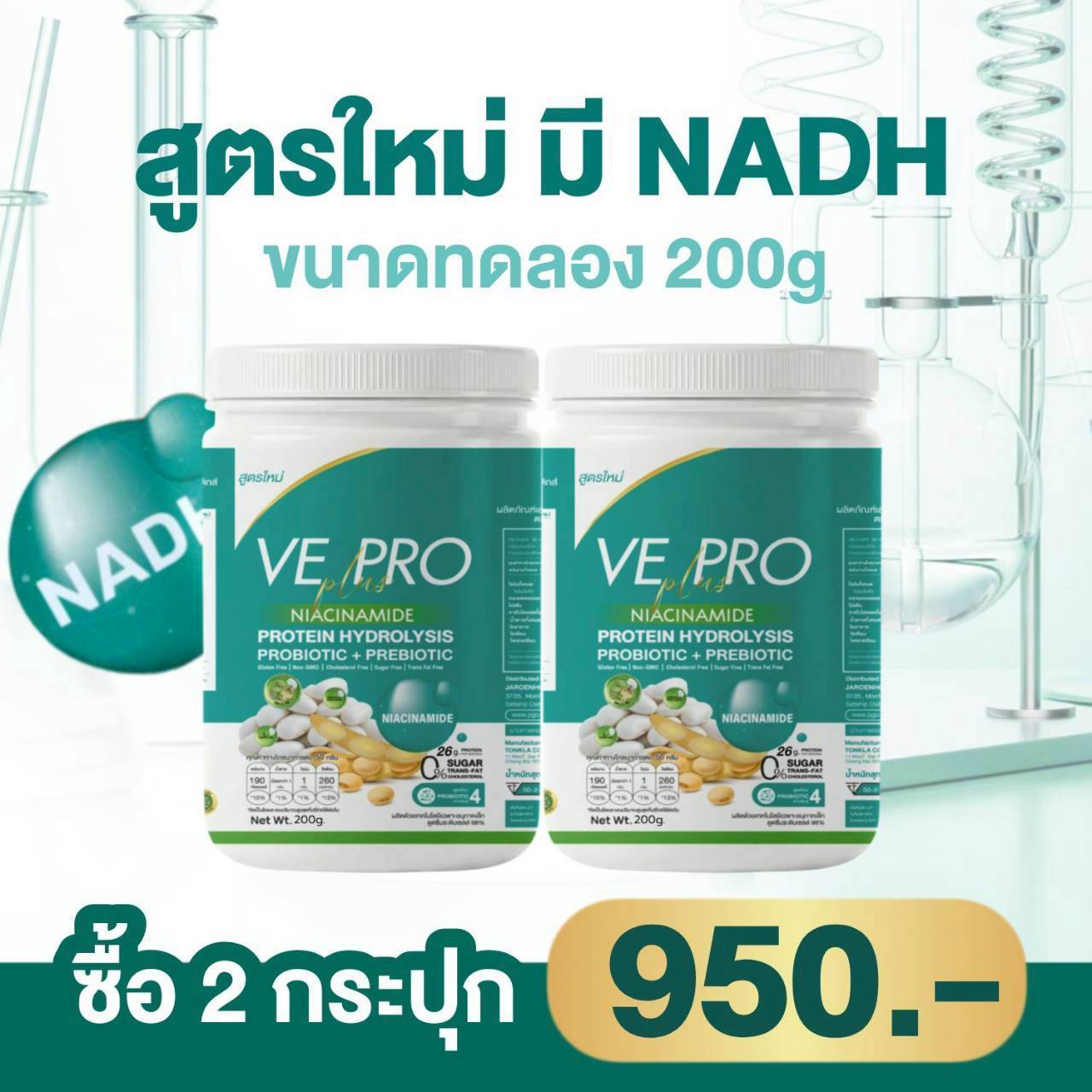 วีโปรพลัส NADH ไนอาซินาไมด์ โปรตีนถั่วลันเตา รสจืด 1กระปุก 200กรัม