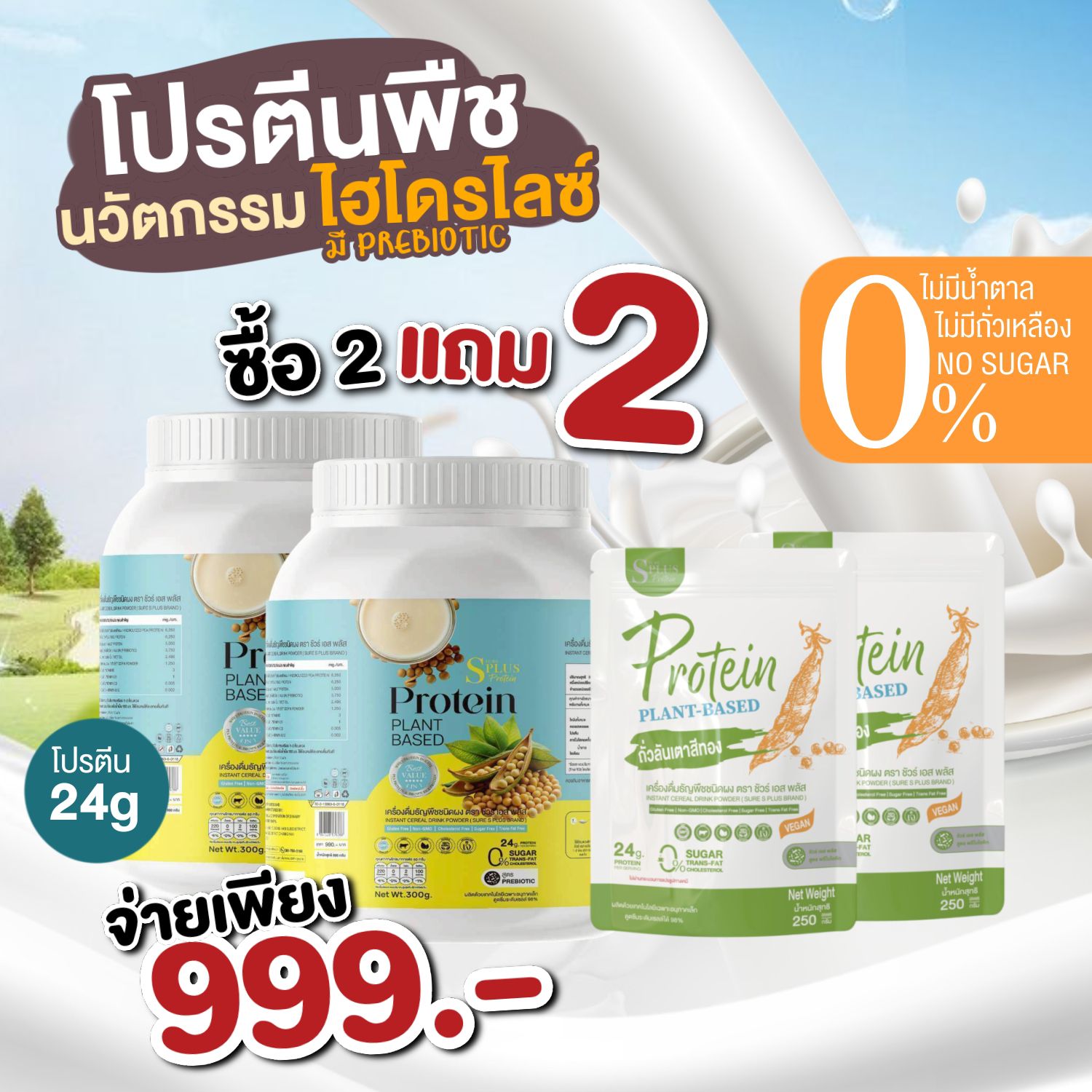 โปรสุดคุ้ม 2 แถม 2 โปรตีนพืชไฮโดรไลซ์ Protein Plant Based ผลิตจากถั่วลันเตาสีทอง (ขนาด 1 กป/300กรัม)รสจืด